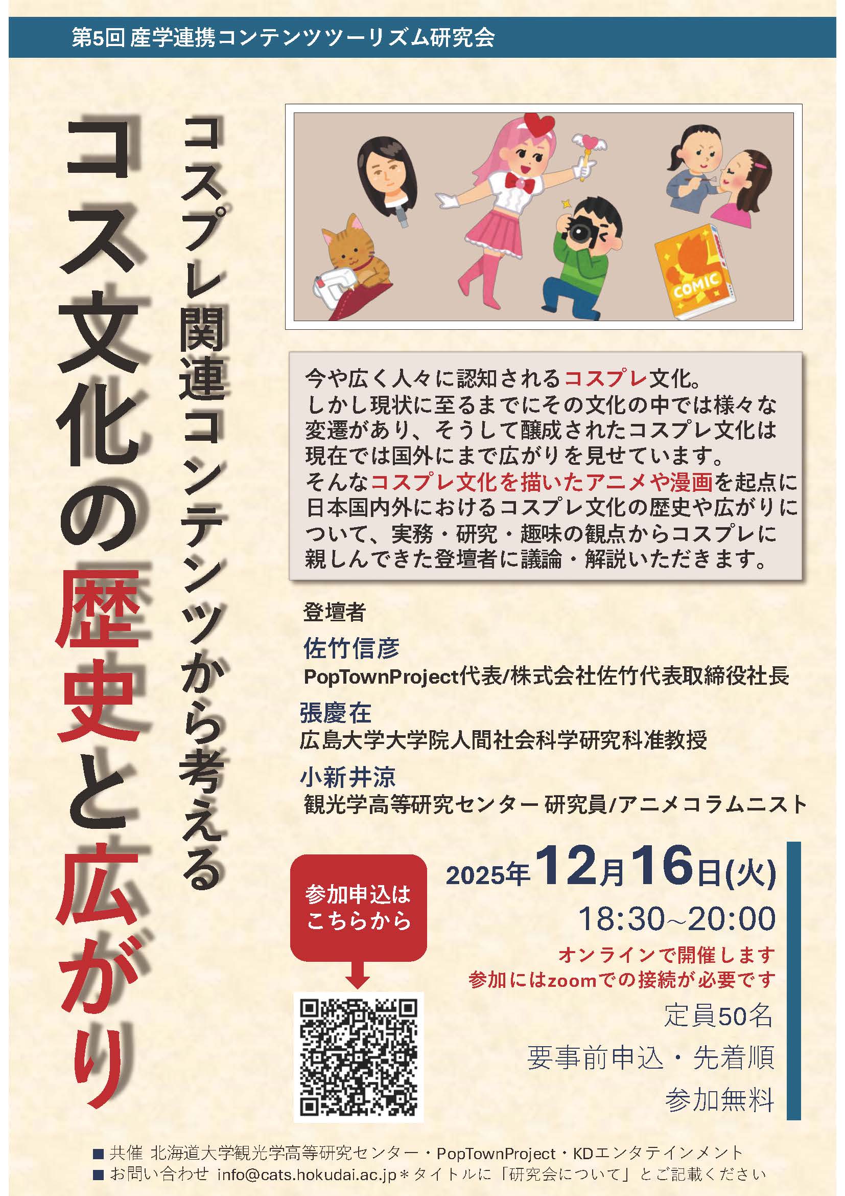 ※2025年度観光学高等研究センター産学連携オンラインフォーラム第五弾 - 日 時: 2025年12月16日(火)18:30~20:00